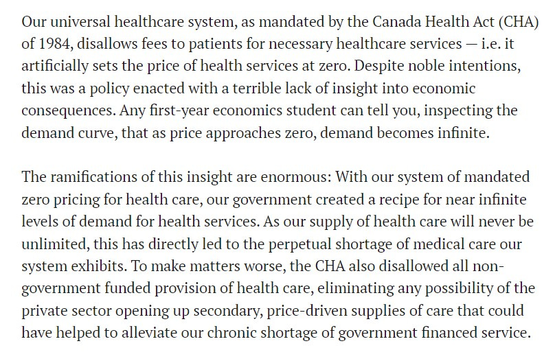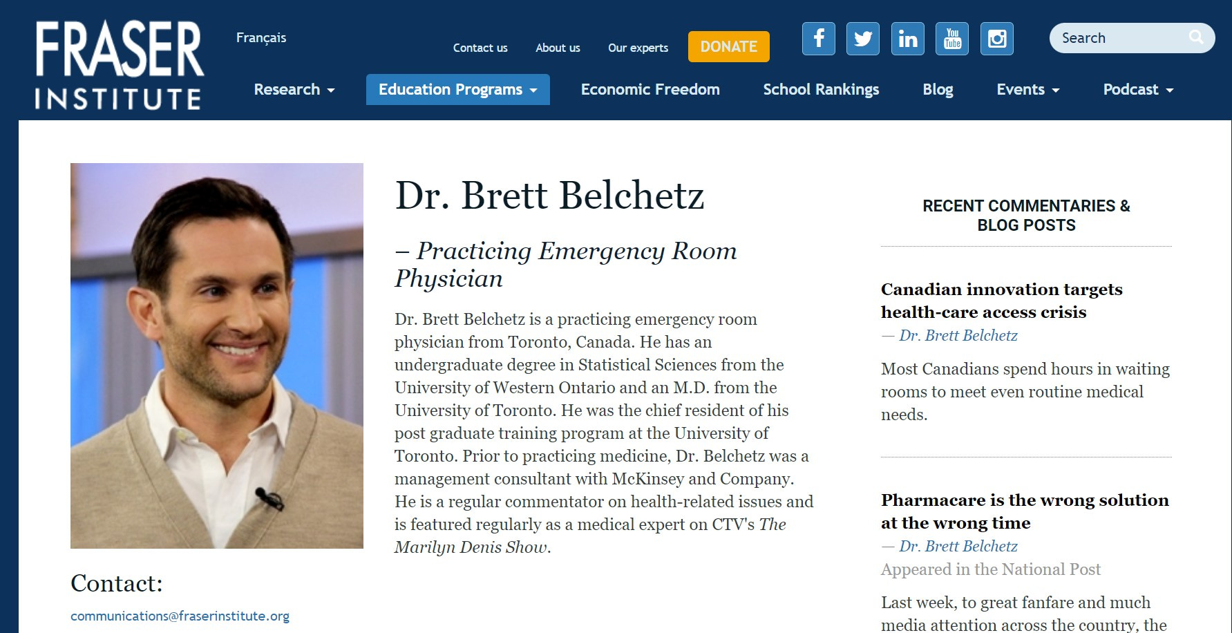 During the same years Belchetz was writing op-eds in support of MAiD, he was also writing (again in the National Post) about Canada’ public healthcare system. Unsurprisingly, given his own business interests, he was chastising Canada for throwing “endless billions into medicare” and offering arguments straight from (where else?) his colleagues at Fraser Institute.